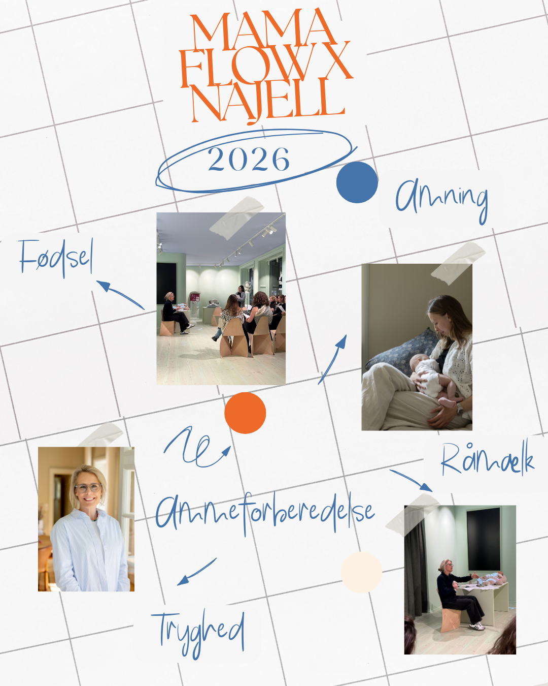 Hos Mama Flow handler ammeforberedelse om mere end teknik og teori – det handler om tryghed, viden og ro i kroppen. I en nærværende og støttende atmosfære mødes 6 kommende mødre hos Mama Flow i Porcelæshaven på Frederiksberg. Her bliver du klædt på til den første amning, amningens naturlige rytme efter fødslen og dit barns signaler.Jeg forbereder dig på det, der venter, og giver plads til spørgsmål, tanker og følelser – alt sammen med fokus på dig, din baby der ligger trygt i din mave og Jeres unikke begyndelse.